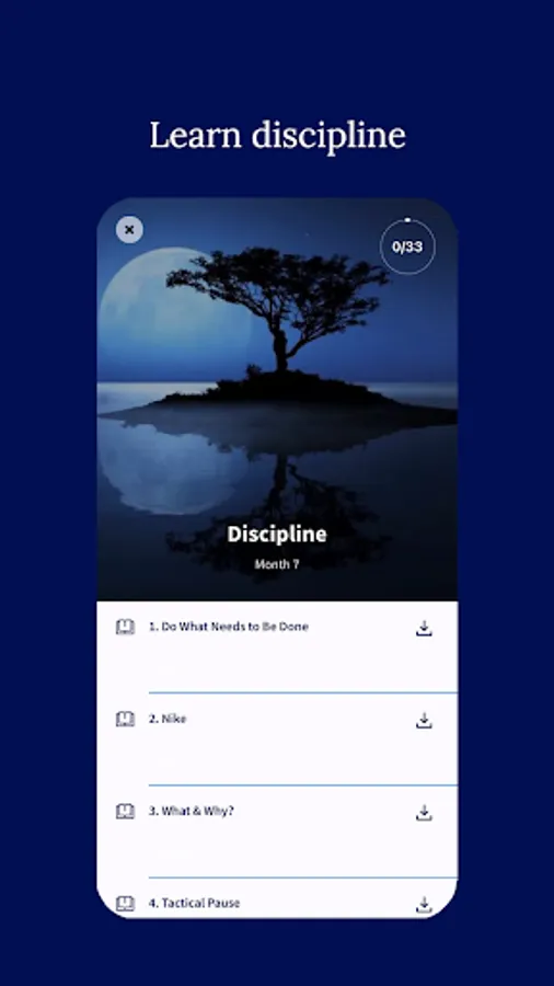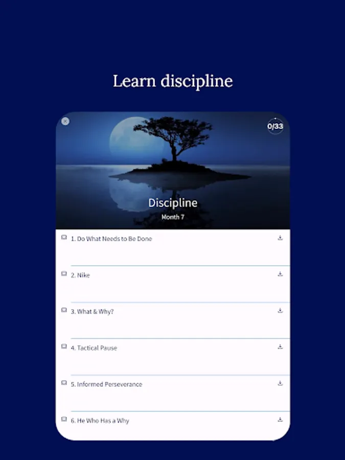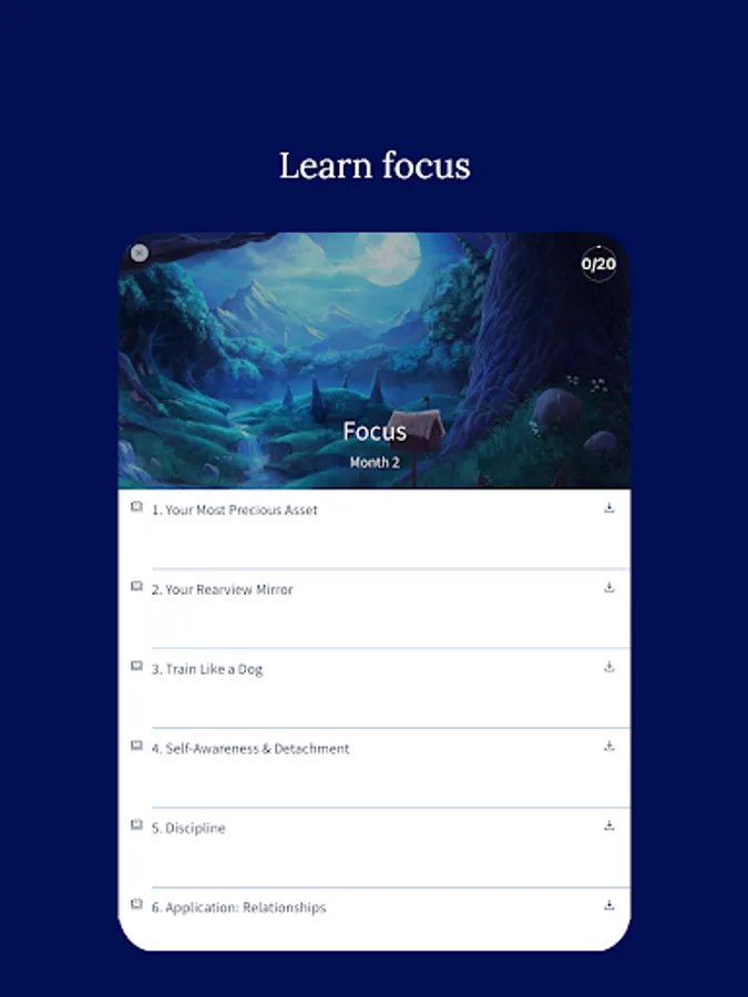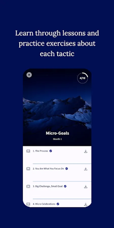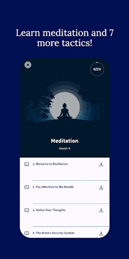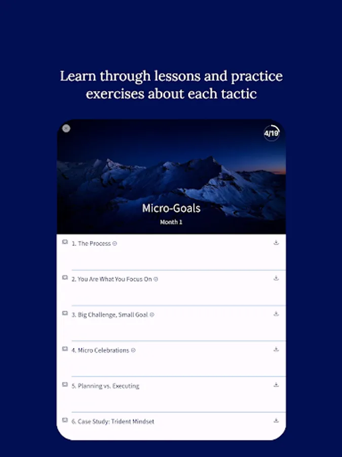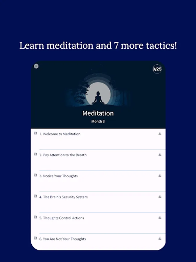 Then you'll advance to the 12-month Mindset Mastery Course. Each month teaches you to master 1 of the 12 tactics. Each day of the month includes a 5-minute lesson, practice exercise, and check-in that teaches you something new about that month's tactic. We spend a month on each tactic, so you have time to turn the tactic into a lasting habit before you move on to the next one.