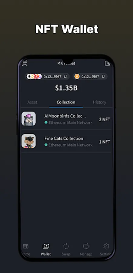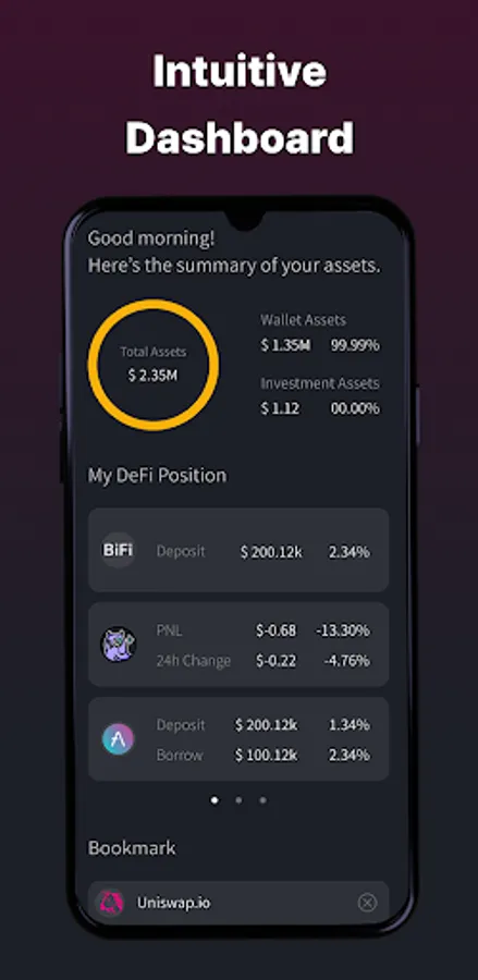 Easily manage multi-chain assets. You can manage all DeFi assets, including Bitcoin, Ethereum and polygon networks, as well as NFTs and tokens.