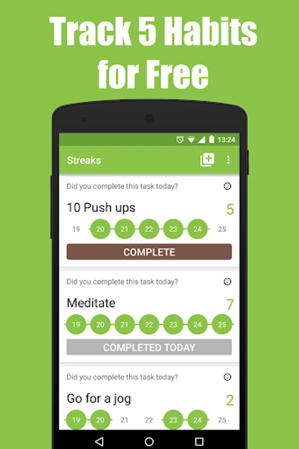 Streaks is a habit tracker that will keep a track of days you've completed your tasks for you. Just don't break the chain and you've built and you're set to build habits! 👊