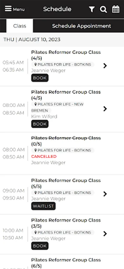 This app allows clients at Pilates For Life to schedule, reschedule and cancel their appointments independently through their phone.