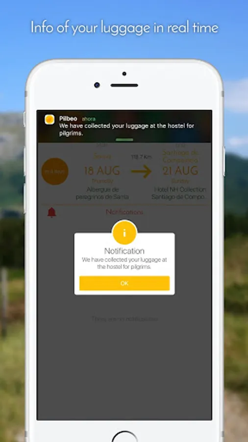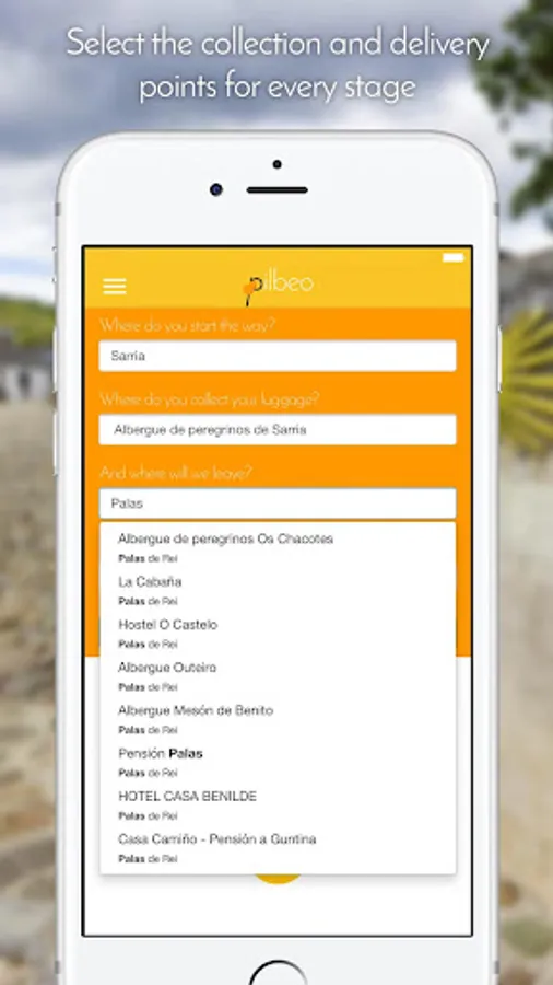 • Use our search bar to select the collection and delivery points for every stage of the Camino. Pilbeo will notify you the status of your luggage so you get to know where it is at any time.