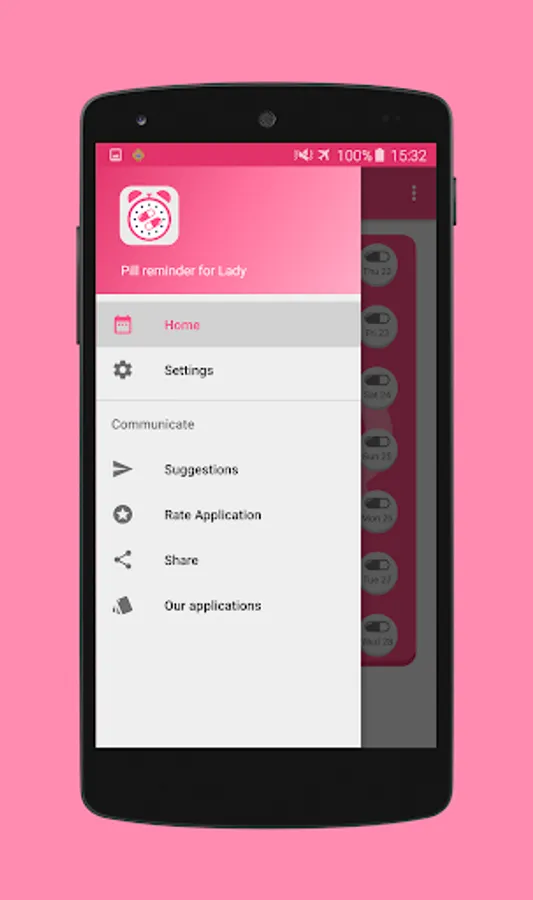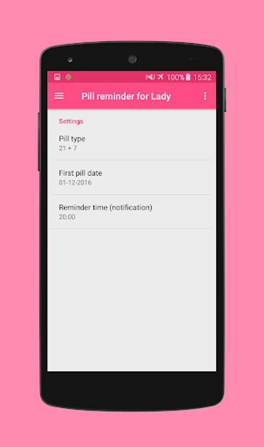 "Contraceptive pill reminder" helps women take their pill on a daily basis and at a regular time thanks to a reminder you set up yourself. You can also check how far you are through your pack and find out when you will have your period.