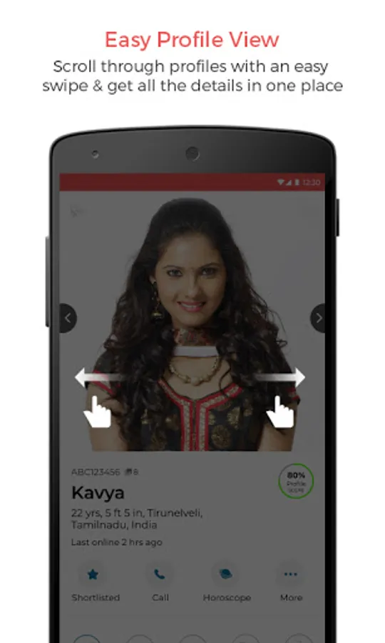 • Access complete profile information like Educational institute, Company and Horoscope /Jathakam.