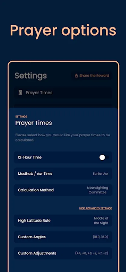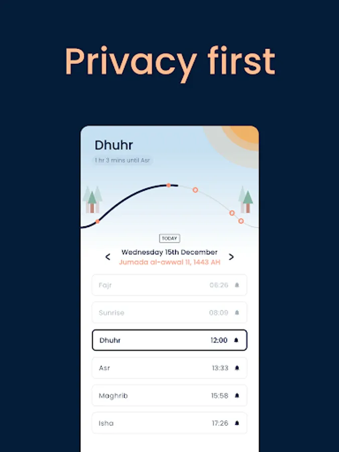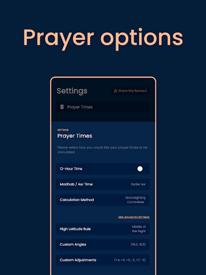 Early & Late Asr Time – choose your Madhab (School of Thought) and tailor your prayer times to the earlier or later Asr time.