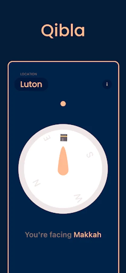 Prayer Notifications – get notified for each prayer time throughout the day. Option to disable notifications available.