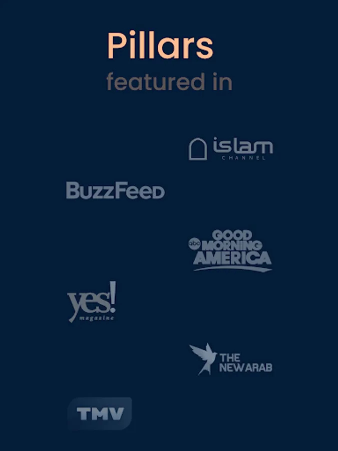 At Pillars we're building features to help Muslims improve their individual condition in multiple aspects of their lives - from the spiritual to the non-spiritual.