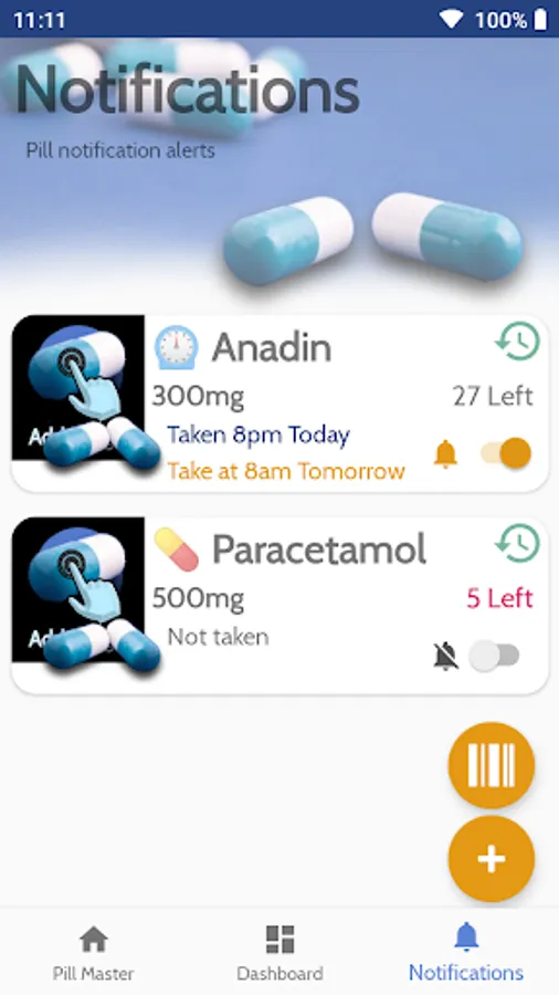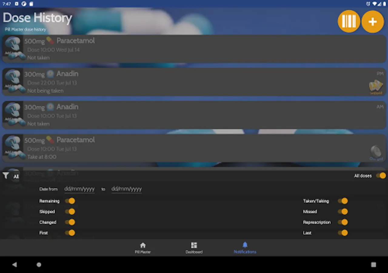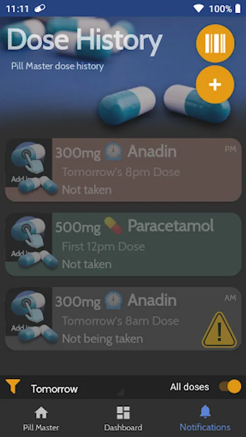 When installed on a phone or tablet you can enter all the medication you take and Pill Master will alert you when it's time to take it, A big flashing button will appear with a different sound effect for each type of medication, you can review and change any dose you take and see what doses you have skipped or missed.