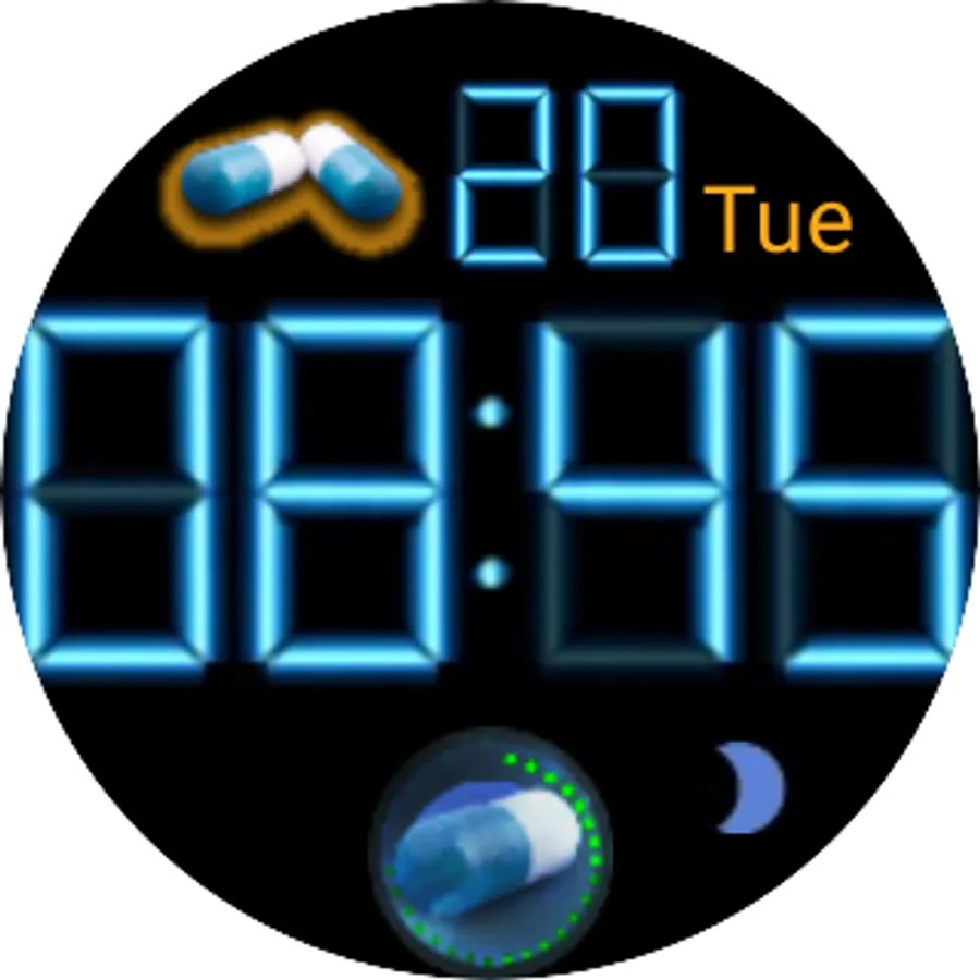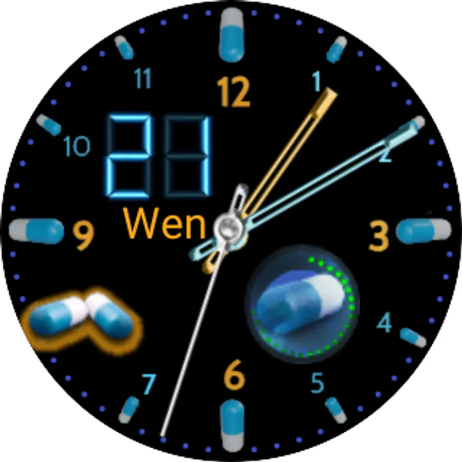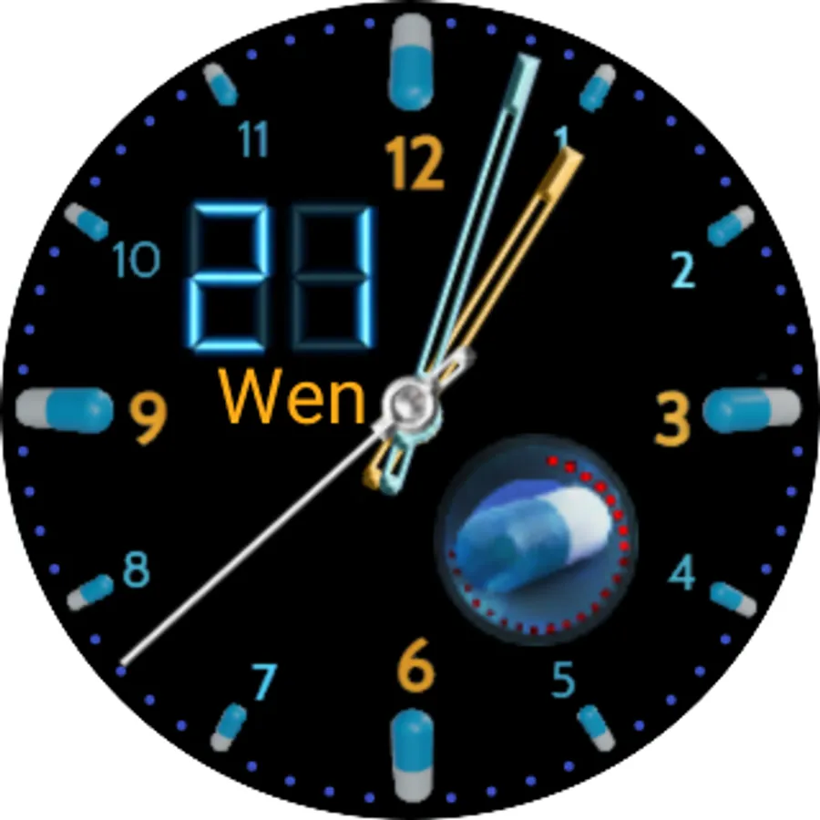 Pill Master has two watch faces a digital one and an analogue one both faces are interactive with a digital date that can be changed by swiping the screen horizontally, you can use these watch faces independently but when linked with the Pill Master app on a phone or tablet you will get medication information and alerts appear on your watch, to do this both devices will need to be paired and linked and you will need to have the full version on your phone or tablet which costs £2.99 and can be purchased in the dashboard by switching on full version.