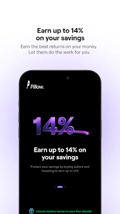 Pillow Fund makes saving and investing easy by allowing you to save in dollar-based assets. You can also earn up to 14% annual interest on these savings. Also, Pillow has no lock-in periods or maturity dates - the interest is paid out daily. Direct transfers from bank accounts to Pillow are available in many countries.
