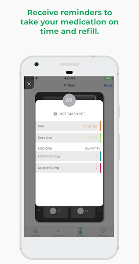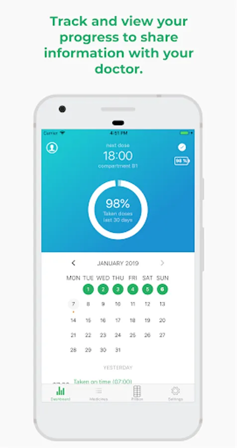 - Every dose taken from the pillbox is automatically registered in the app for you