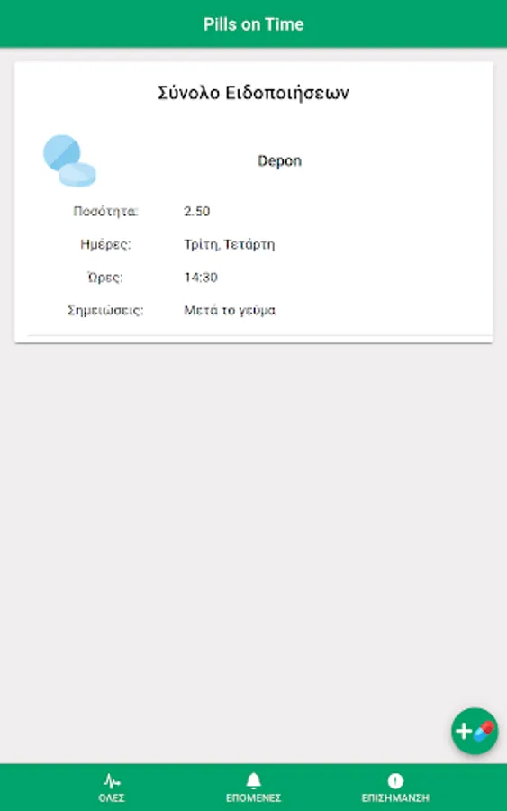Pills on Time is a smart application which helps you to take your medication on time and can assure that missing a dose will not be one of your worries.