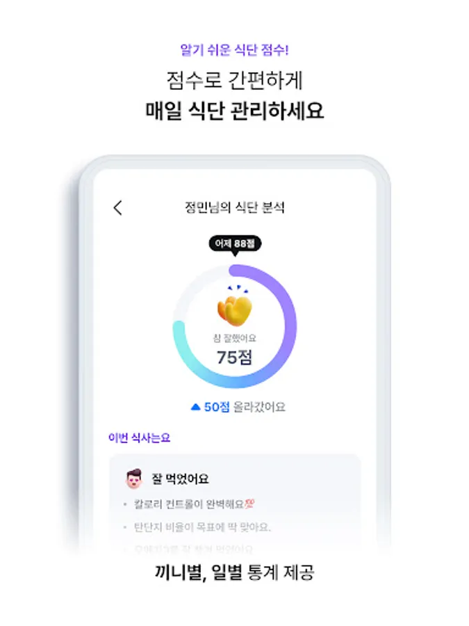If you record the food you ate, it automatically calculates calories and tandanji intake and notifies you of today's meal score.