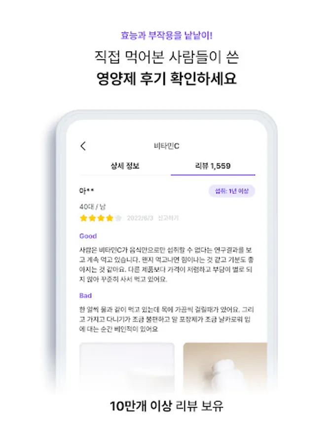 Easily find information on 20,000 nutritional supplements and over-the-counter medicines purchased domestically/overseas! You can check at a glance whether there are any nutritional ingredients that are not suitable for you, whether there are bad ingredients, when and how much to eat, the strengths of the product, and even reviews.