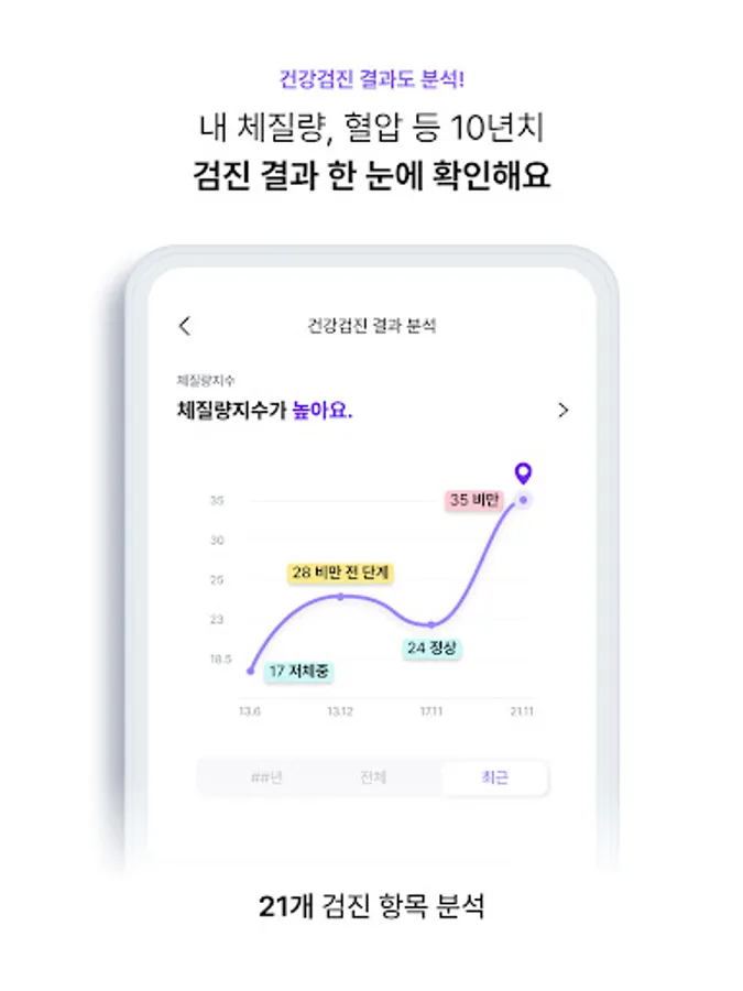 ● Analysis of 10 years of health examination results Easily import 10 years of health examination records from Philize, check and record health changes!