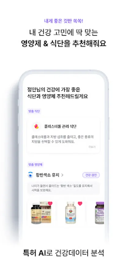 It analyzes your health data, such as height, weight, health checkup records, health concerns, and amount of activity, and recommends a diet management plan that fits your health goals.