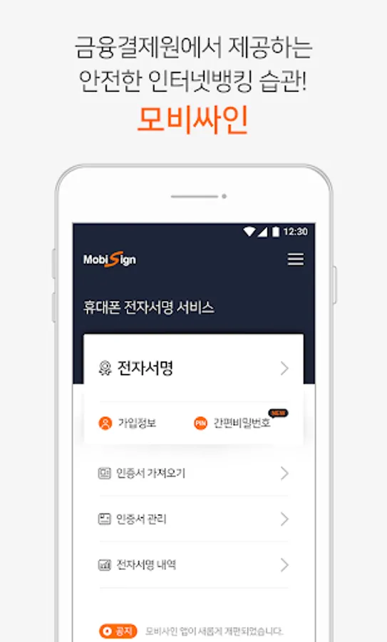 Based on the Information and Communications Network Act for the protection of users related to smartphone app access rights, Mobisign accesses only the items essential to the service, and the contents are as follows.