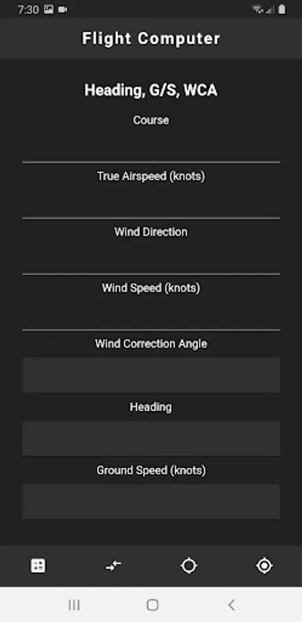A condensed version of an E6B. Calculations include: wind correction angle, groundspeed, true airspeed, density altitude and true altitude.
