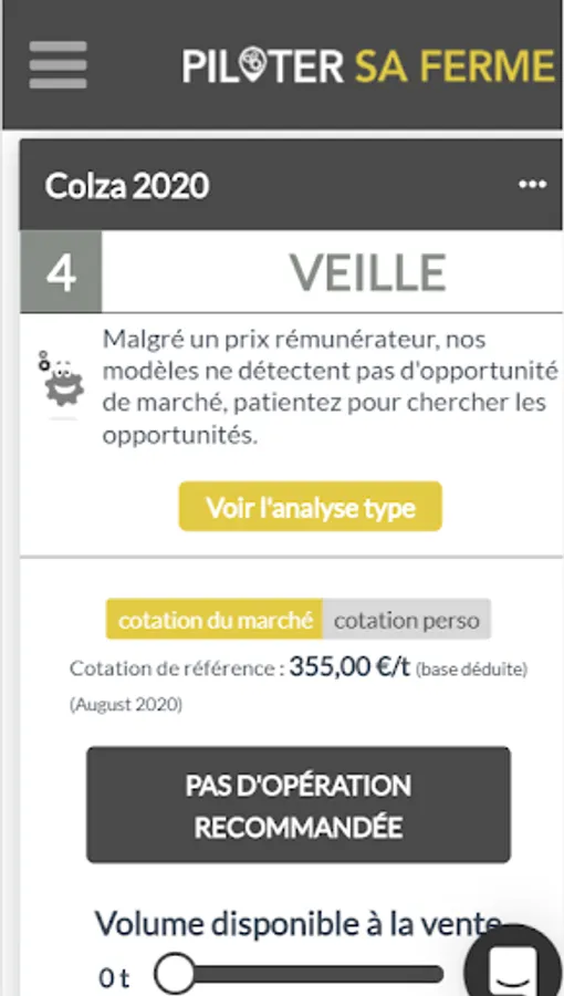 - receive each week by mail: most of our analyzes to decide in less than 5 minutes on your farm what you can do