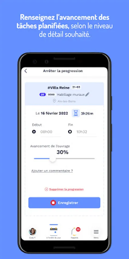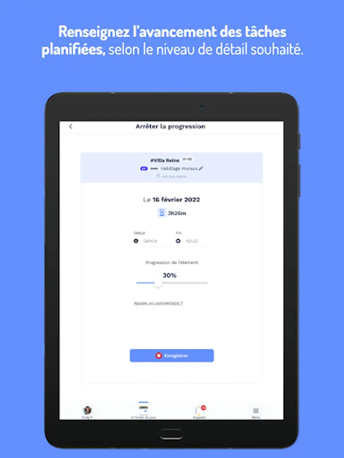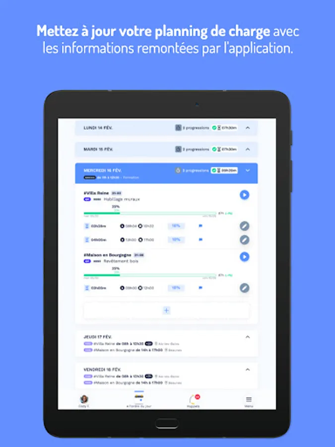 - Fill in, according to the desired level of detail, the progress of the planned tasks.