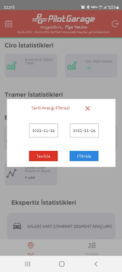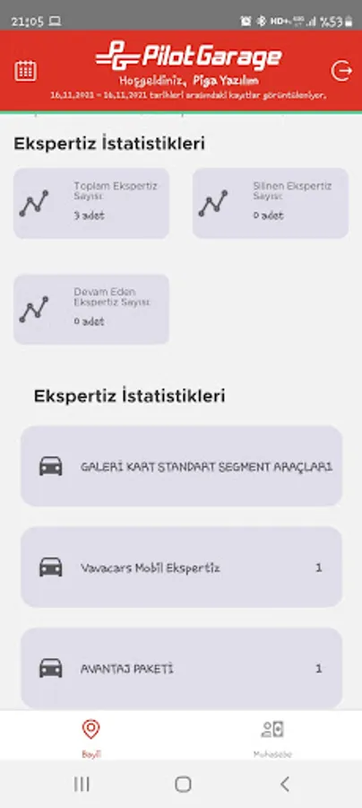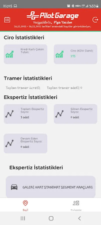 It is an application where the dealers serving within the body of Pilotgarage can view the turnover, trade, expertise statistics between the dates they want and follow their preliminary accounting.
