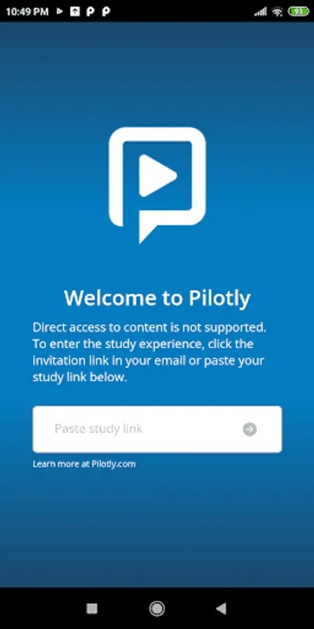 Pilotly is a research platform to screen test new video content. Viewers can provide feedback on TV shows, movies, or other streaming video directly from their mobile device. Direct access to content is not available, and requires invitation to participate in studies. Users invited to participate download the app, watch a video, and answer survey questions. Viewers also have the opportunity to provide direct feedback as they are watching, providing powerful research and insights to content producers.