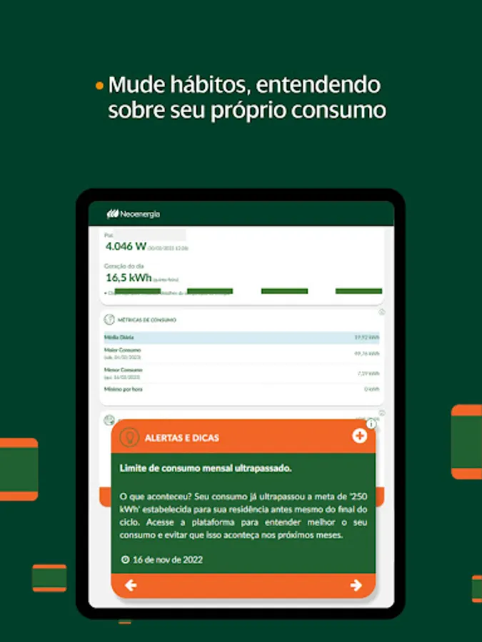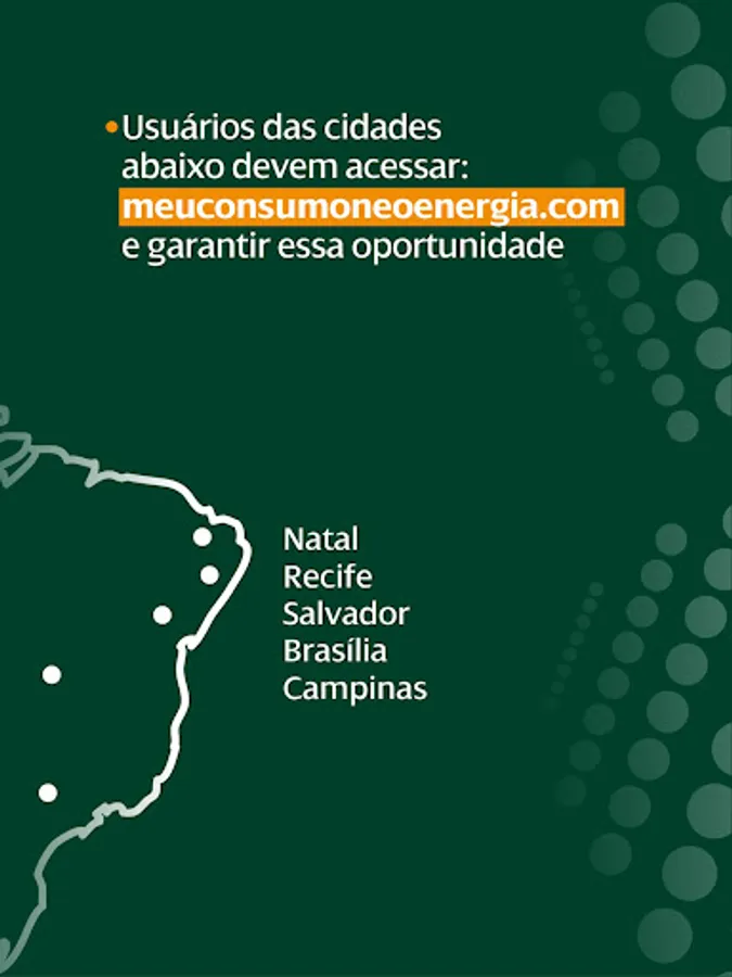 Application for exclusive use by customers participating in the pilot project to monitor the energy efficiency program, regulated by ANEEL, of the distributors of the Neoenergia group. Customers interested in participating must register behind the website: meuconsumoneoenergia.com.br