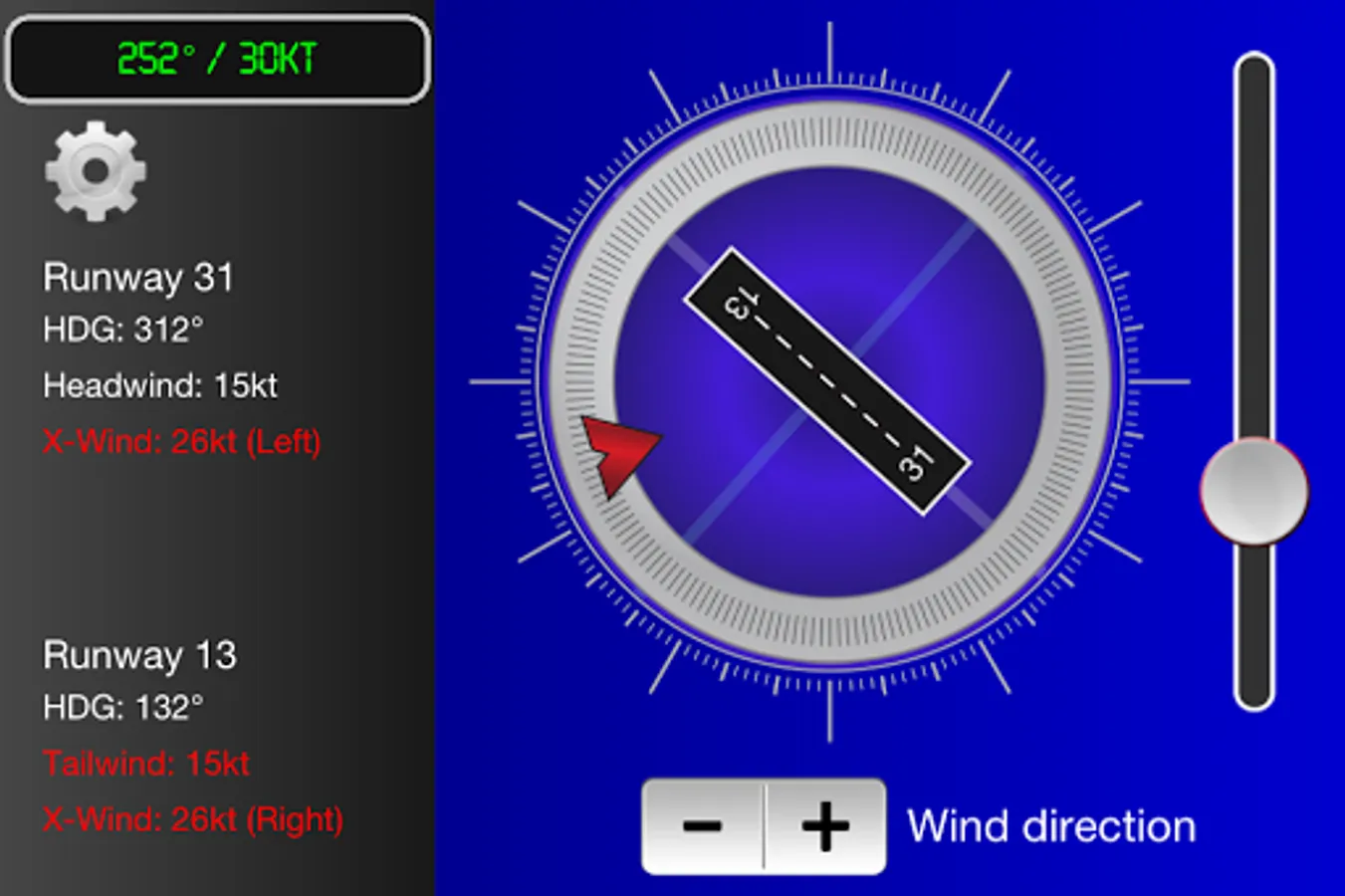 Flight Winds helps pilots calculate crosswind, tailwind and headwind components for takeoff and landing.