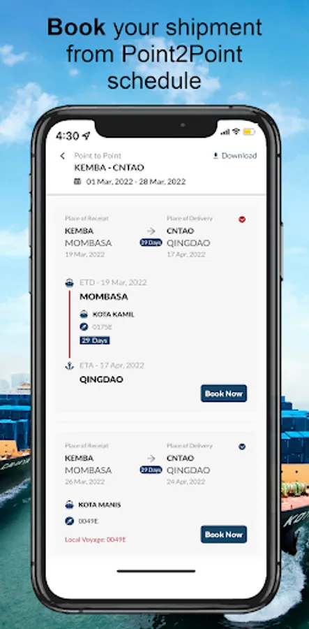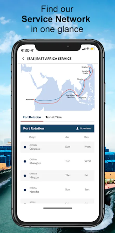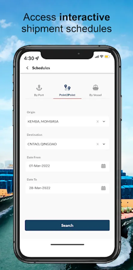 - Interactive shipment schedule by port, point-to-point, and by vessels, as well as our service network coverage.