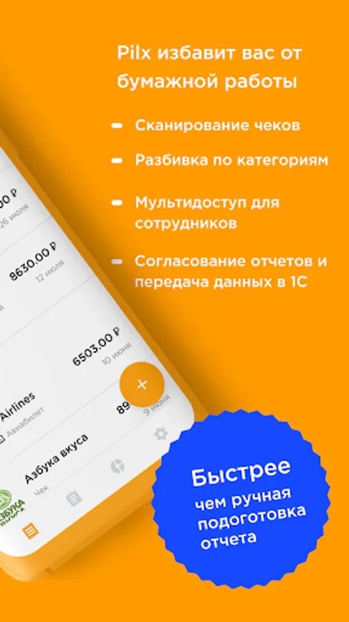 Pilx is a service that helps automate the process of collecting and preparing primary documents. The application allows you to scan checks, conveniently store them by category, and automatically generate an adapted report for export to 1C.