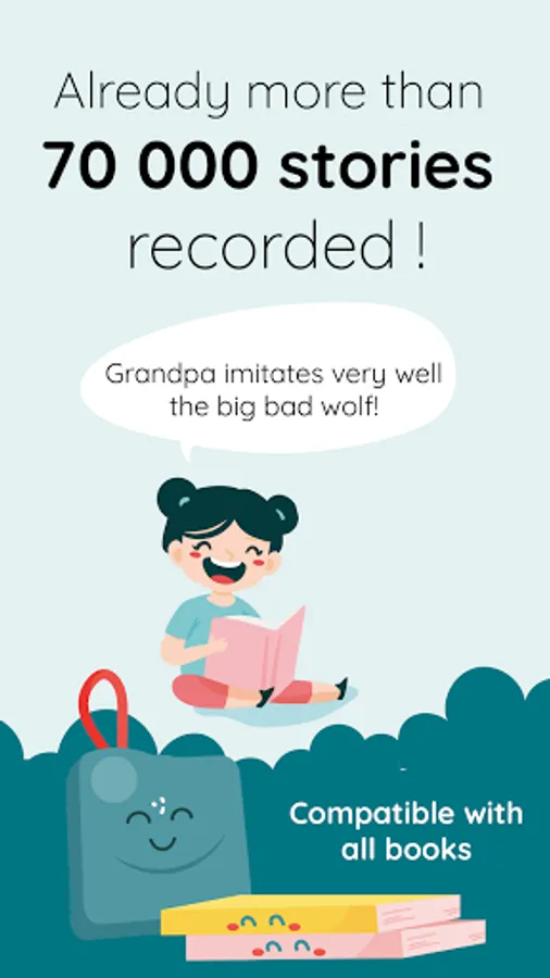 BOOKINOU encourages children to enjoy books. The mobile application is connected to an audio player that enable children to listen to the audio version of ANY book with the voice of a beloved one.