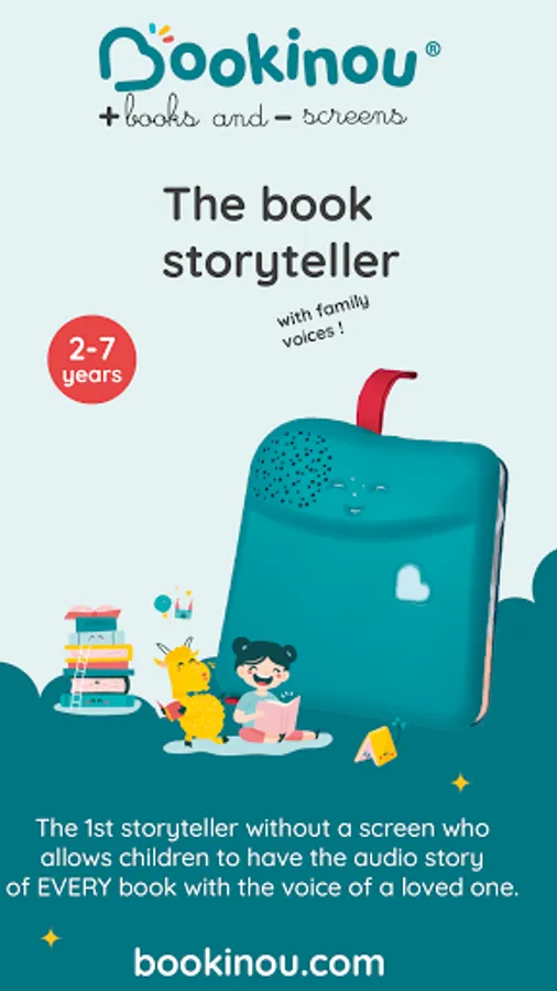 The mobile application enables you and all the family to record and customized the story of any Book. Then, your children can be easily listen to those stories on Bookinou which is a screenless audio player designed for them.