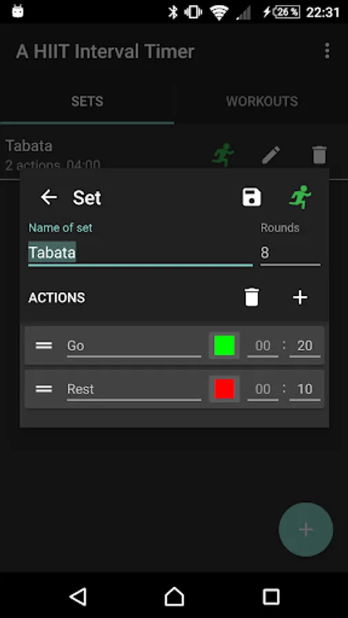 Easy to use workout timer for interval training. Create your own sets and workouts!