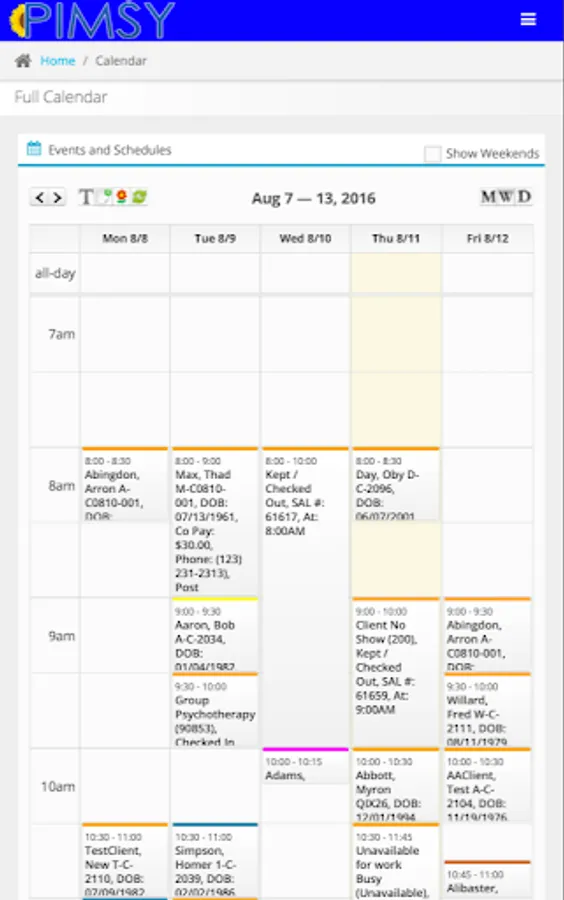 The PIMSY Provider Portal allows providers and clinicians to schedule or review their appointments and calendar, access client charts, document notes, upload documents, and many other clinical tools. It is not intended as "full access" to the PIMSY system. This is not a Client Portal and should not be used by patients.
