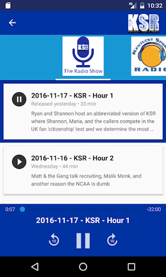 * Listen to all 3 KSR podcasts, even while the app is closed!