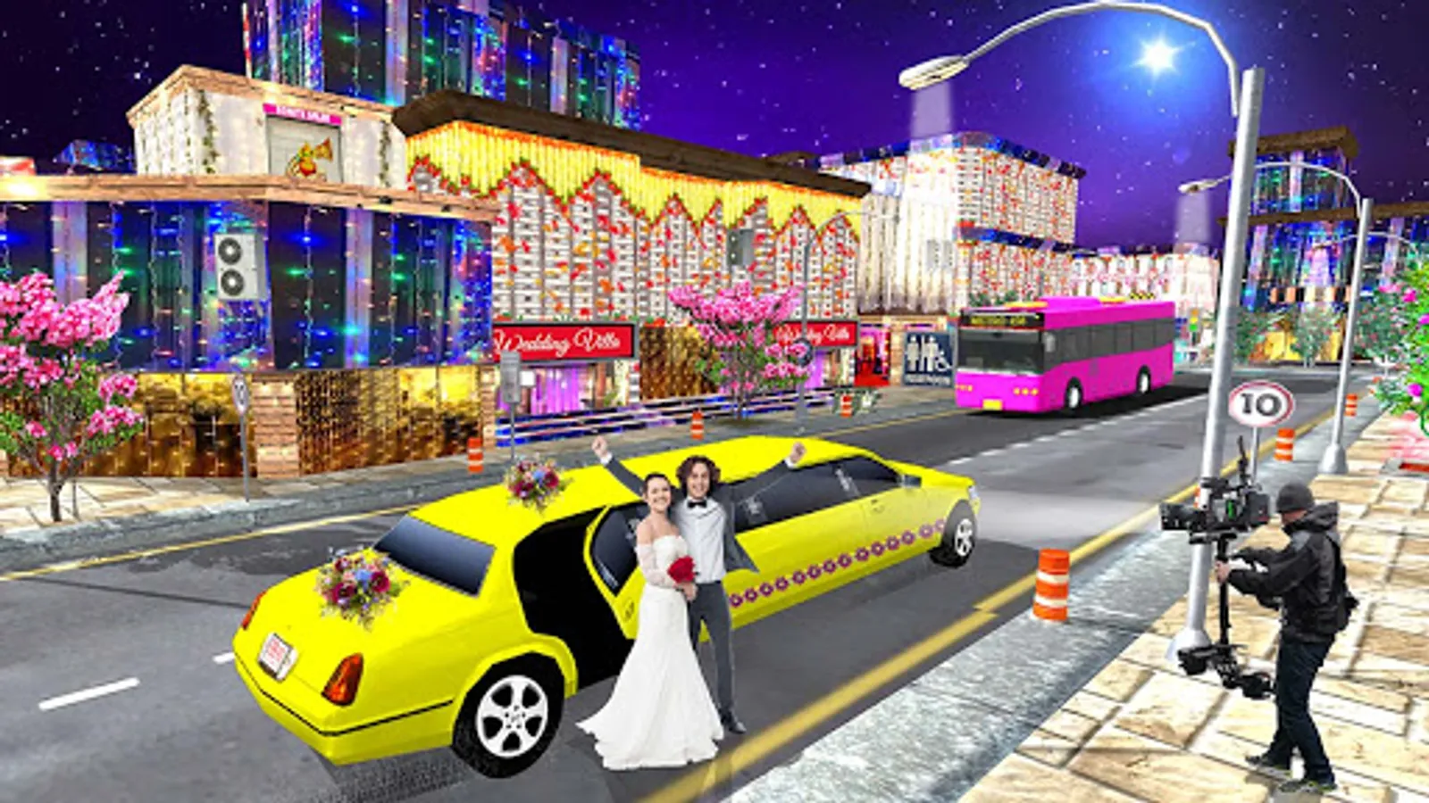After the wedding of this new love couples, starts you luxury wedding car games. Pick this new love couple from wedding hall in limo car in this side and drop them toward the new house. Don't to be careless about car fuel. Fill fuel at every wedding car taxi service task. Now pick the wedding registrar from wedding banquet lawn and drop him to the groom's new house for a dinner. After dinner, drops the wedding registrar to the bus station. So that he can reach at his own home, in this wedding simulator 2019.