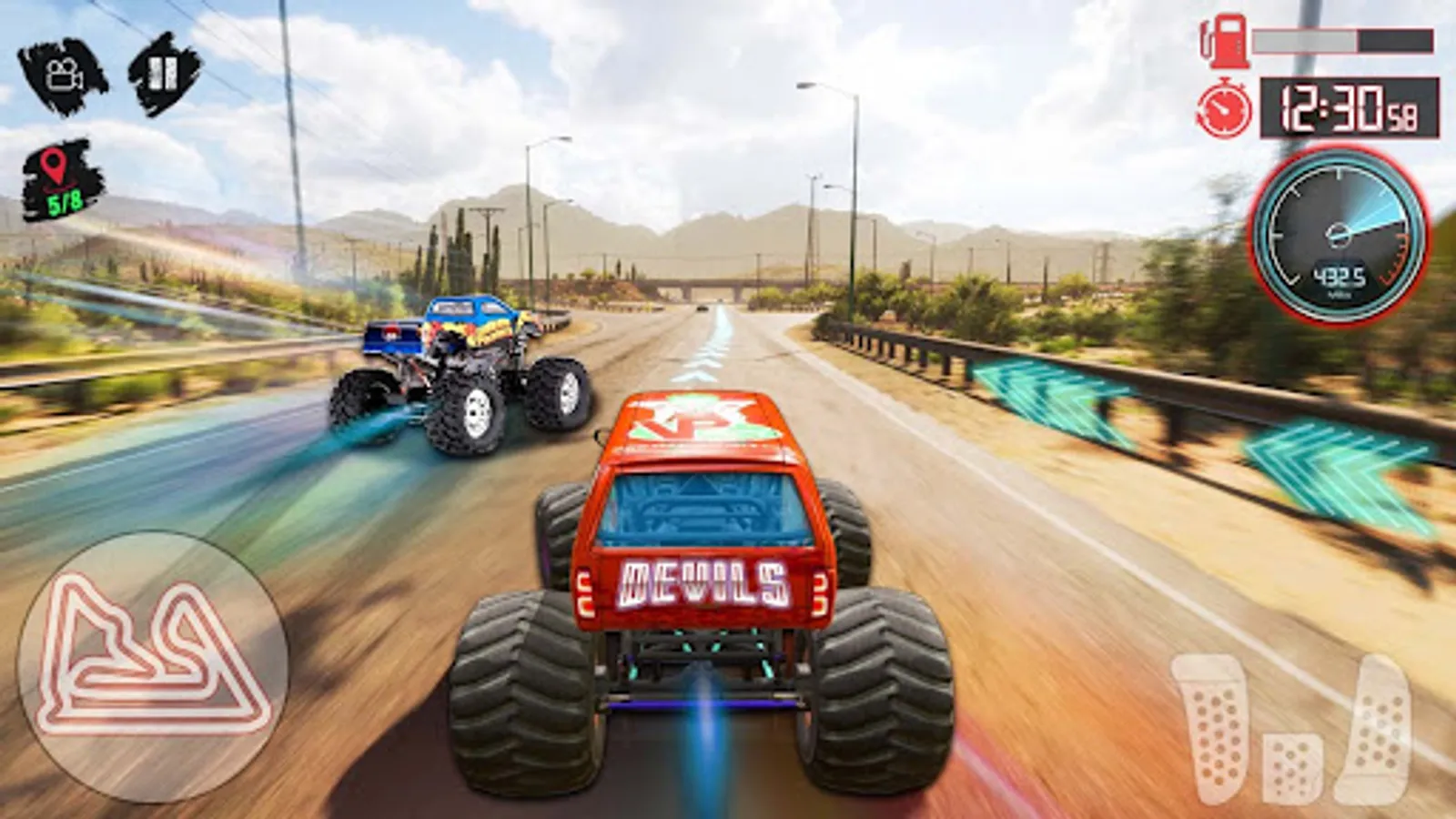 Fantastic control of monsters will entertain you to most as it is based on the real truck suspension for offroad tracks drive. Maximum truck acceleration and velocity is given to all truck monsters, to compete with maximum difficulties.