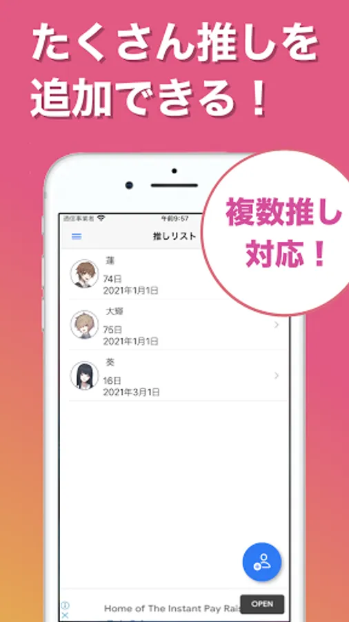 You can create as many dedicated pages as you like for each recommendation! You can set your favorite background image and recommended icon on the dedicated page. Let's set boyfriend, girlfriend, child, pet etc. freely as well as pushing! The number of days elapsed is automatically counted from the day you start pushing. It also automatically counts down important anniversaries such as the 100th anniversary and the 1st anniversary!