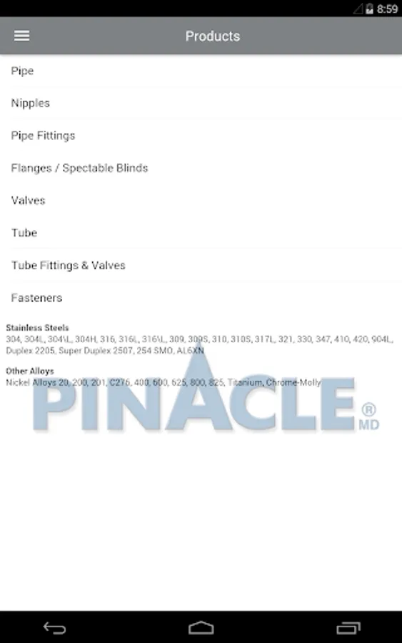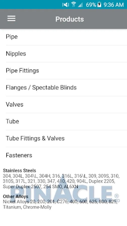 Take a look through our catalogue and send us an email or give us call. PinAcle Stainless Steel Inc. is Canada’s Largest Stocking Distributor of Stainless Steel and Non-Ferrous Alloy commercial Pipe, Fittings, Flanges, Valves, Tube, Fasteners and Pipe Hangers. Since 1987 PinAcle has been providing Quality Products, Quality Service and Quality People. With multiple locations across Canada we offer a fast and comprehensive service for all your Stainless Steel and Non-Ferrous commercial plumbing requirements. PinAcle Stainless Steel Inc. is an ISO 9001 Registered Company with Candu N285.0 Nuclear and NSF 61 registrations.