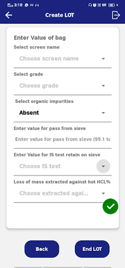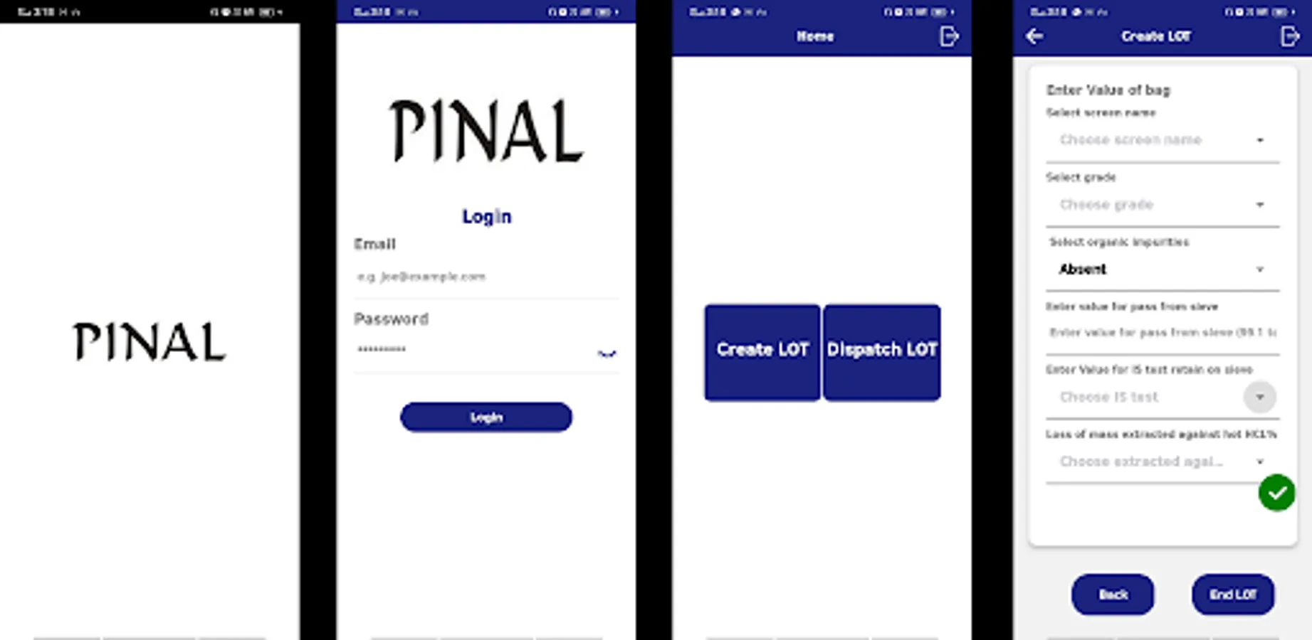 This Application is built to help in generating quality standard reports by entering test results for each bag in a lot. This application is used to create test results of using different parameters. Pinal Corporation Application is only available for the Organisation.