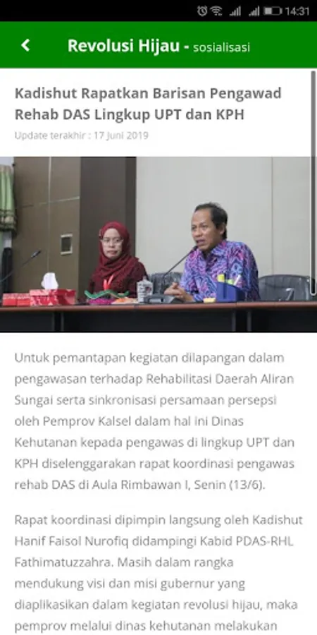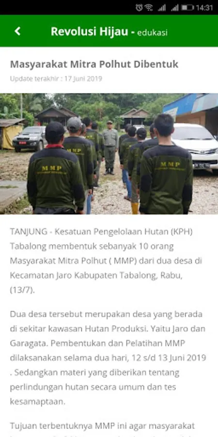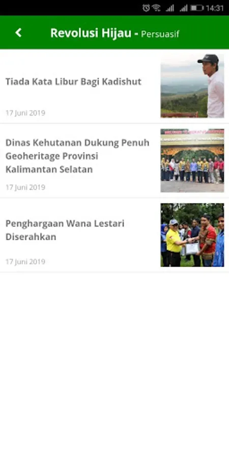 The Green Revolution Application is a reforestation program from the South Kalimantan Provincial Forestry Service through the provision of field reporting and data / information distribution to the community in a participatory manner through 4 activities, namely Education, Outreach, Action and Persuasion. The Green Revolution application allows field officers and the general public to report to the South Kalimantan Provincial Forestry Service with photos and coordinates on the ground.