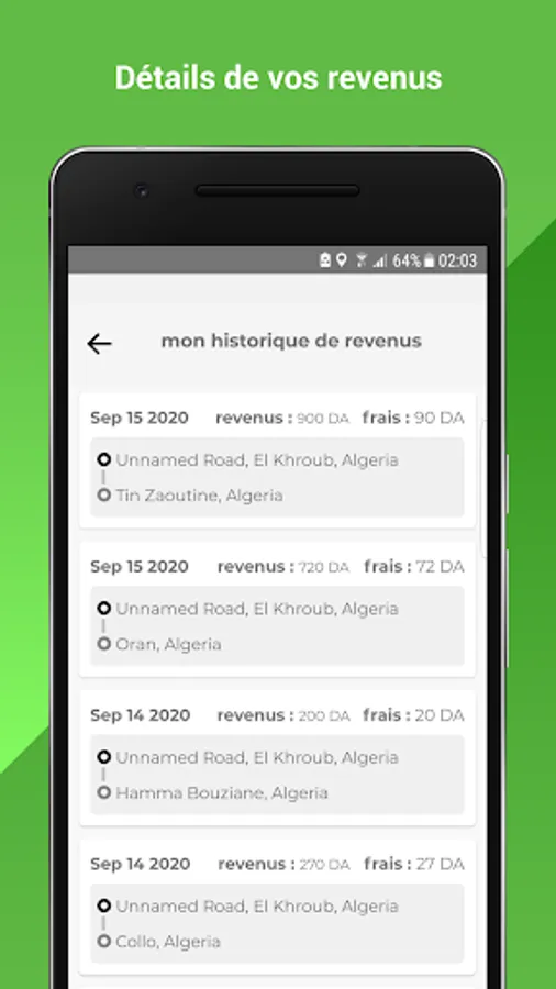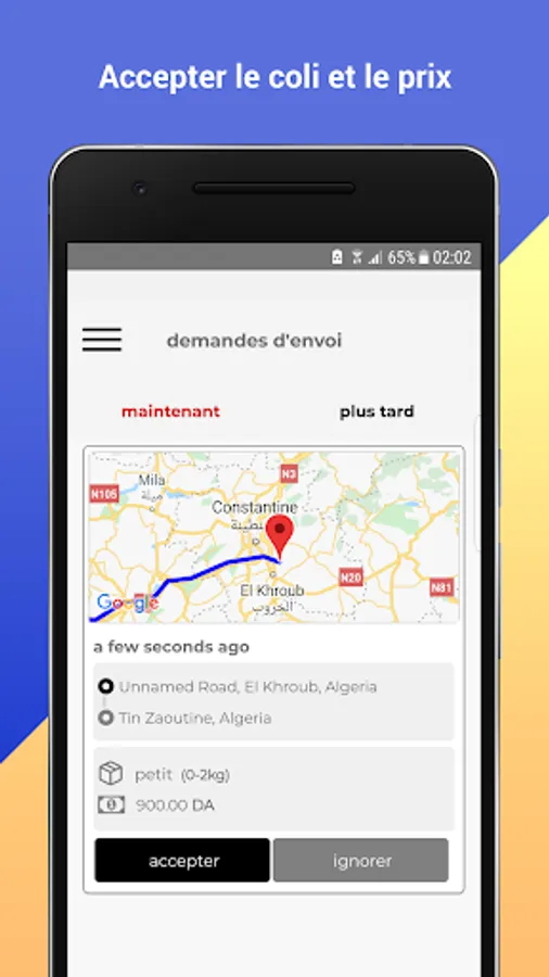 pina deliverer is a delivery application intended for individuals who move around the country, regardless of the mode of transport and allows them to earn money by delivering customer orders available at their place of transport. The principle of the application is to connect individuals who wish to deliver their packages to commuters throughout the national territory. The features available in the application are: