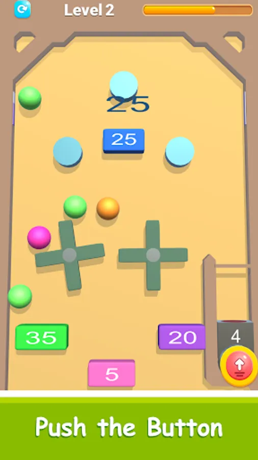 No need to pin the balls, just push the button and fire balls to get the score and walk through levels. Press the button wisely since you are changing firing rate.