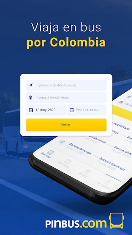 Travel by bus throughout Colombia choosing from more than 60 companies, 3,500 routes and 1,000 destinations. Download the Pinbus app, create your account and you will be able to: