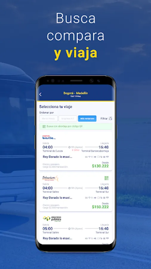 To travel throughout Colombia by bus, it is not necessary to stand in line to buy your ticket at the transport terminal. You can buy from the app on your cell phone. Travel to destinations such as Bogotá, Medellín, Barranquilla, Cali, Cartagena and many more.
