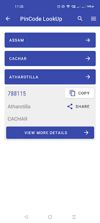 Pin Code Search is an Offline Pin Code App from PinCodeLookup. This app lets you search pin codes using state->district->post offices. It also lets you search pin codes and locations directly using search option.