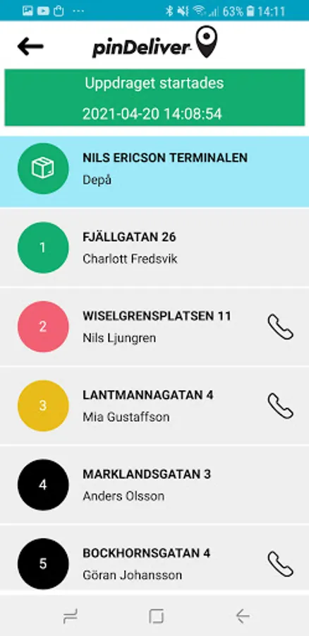 pinDeliver Go Cloud is the driver's tool with full support to make deliveries as smoothly as possible. The app contains a digital driving list based on the planned route. The driver follows the driving list and registers the delivery status at each stop and any deviations. Transport management and customer service can then follow the deliveries in pinDeliver Office and the customers on the route then receive ongoing information regarding their upcoming delivery.