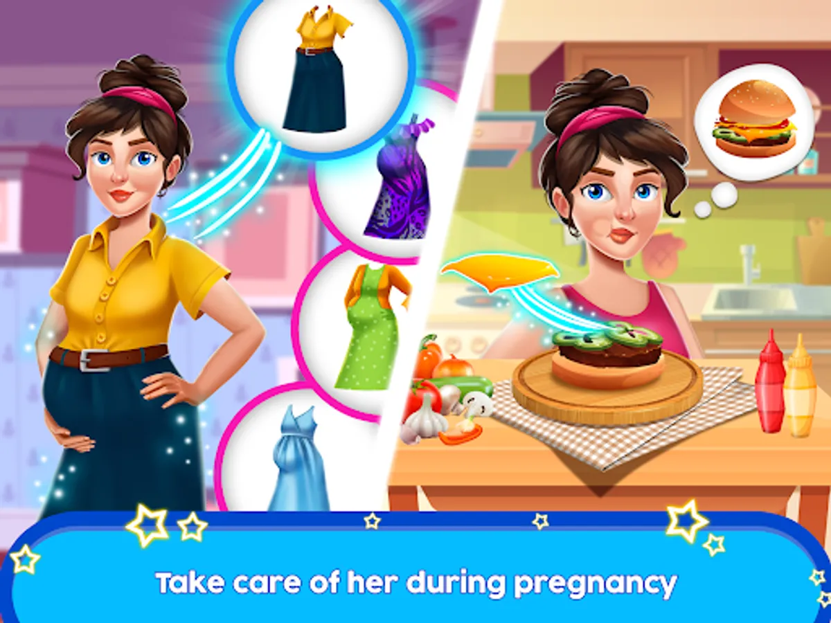 Let the newborn & pregnancy magical moments of pregnant mother and parenthood be enjoyed in this Mom game. Learn how to handle various scenarios, such as emergencies or mood swings of mother games, while providing love to the newborn baby in family games. Explore a range of educational and entertaining activities of taking care pregnant mom mother & baby Mom games, including singing lullabies, playing interactive games, and teaching the Pregnant mom new skills in this babysitting & mother games.
