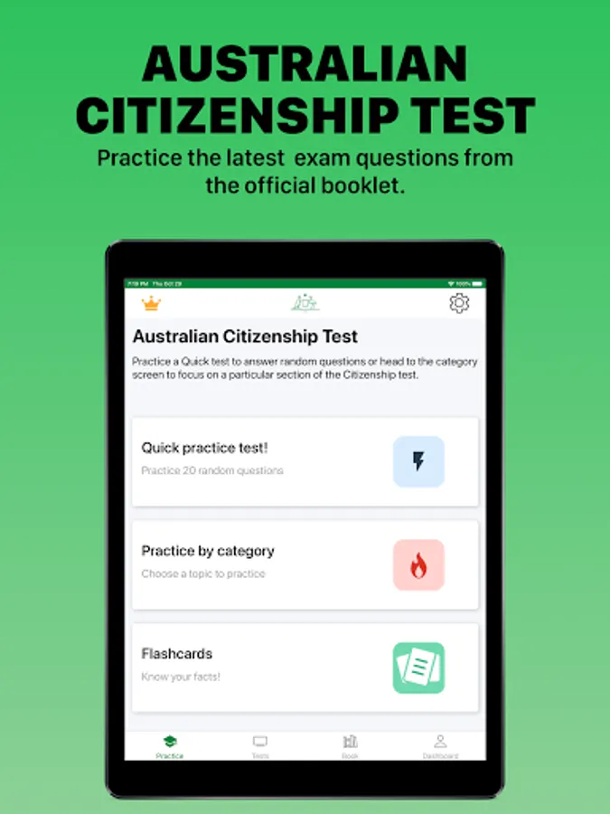 • We give you the tools to get a perfect score and get your Australian Citizenship test.