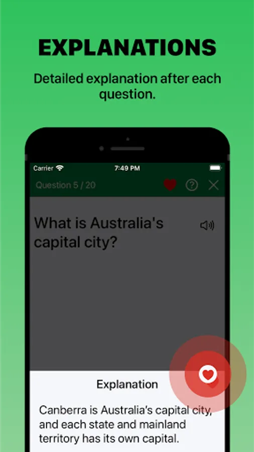 Citizenship Test AU 2023 reproduces the official citizenship test and score guide to make sure you get accurate and reliable test results. You will get a detailed explanation after each question to help you memorise the answer.