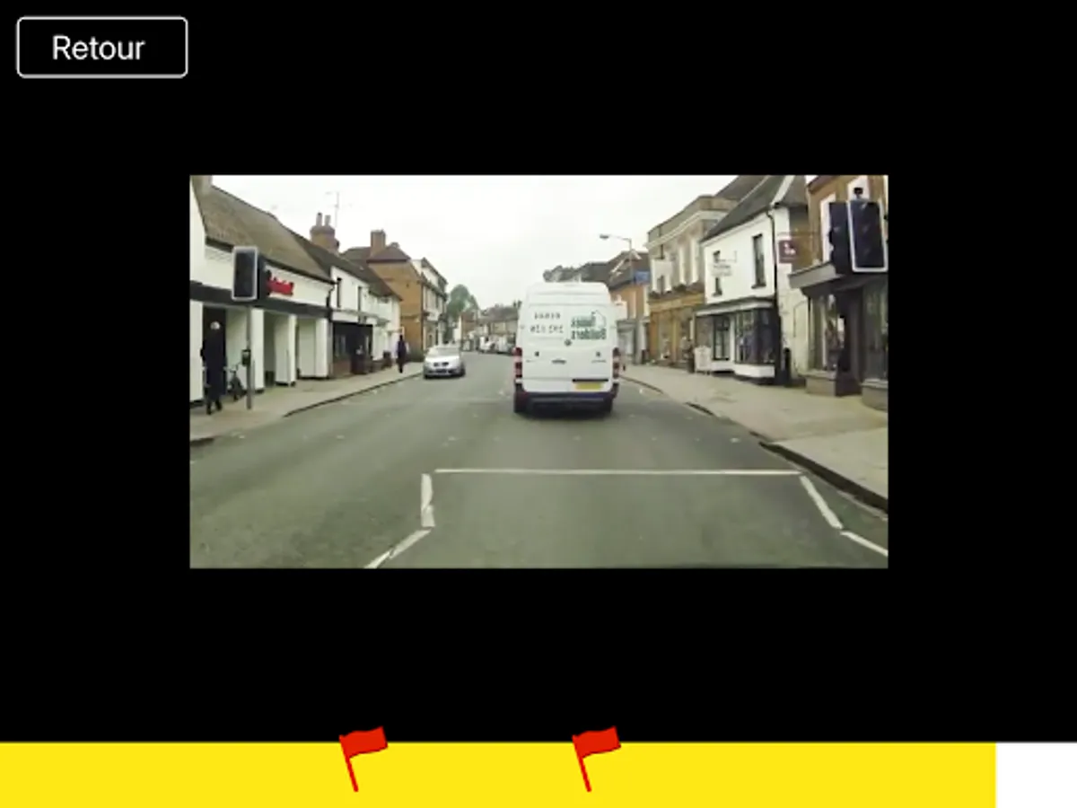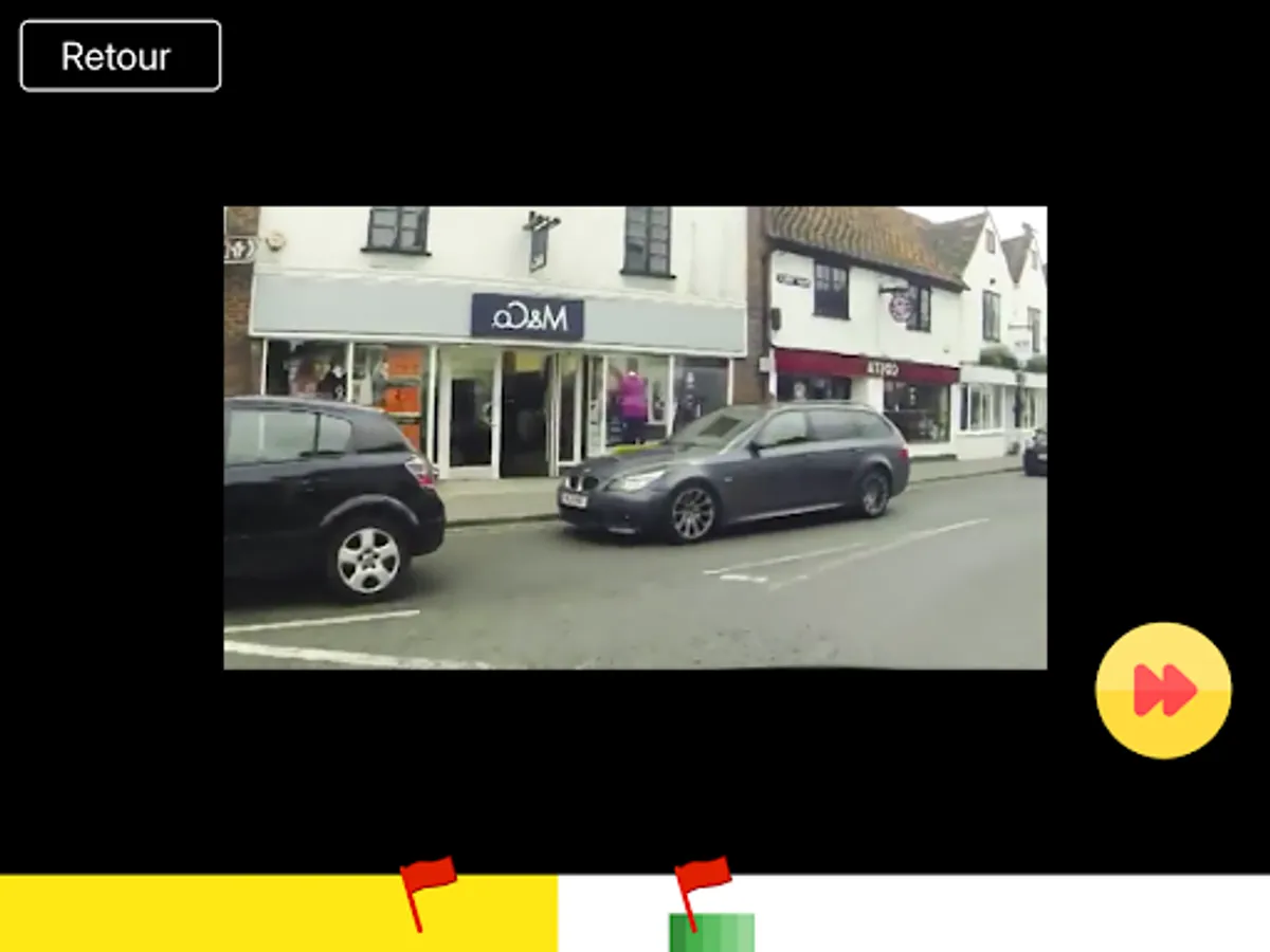 - Risk Zone: A video sequence scrolls on the screen. Imagine yourself behind the wheel of your car. A risk is an external event that forces you to take action (adapt your speed, change direction, honk, road signs, etc.). You must touch the screen when danger is present. The test consists of 5 short films. You pass your test from 6/10.